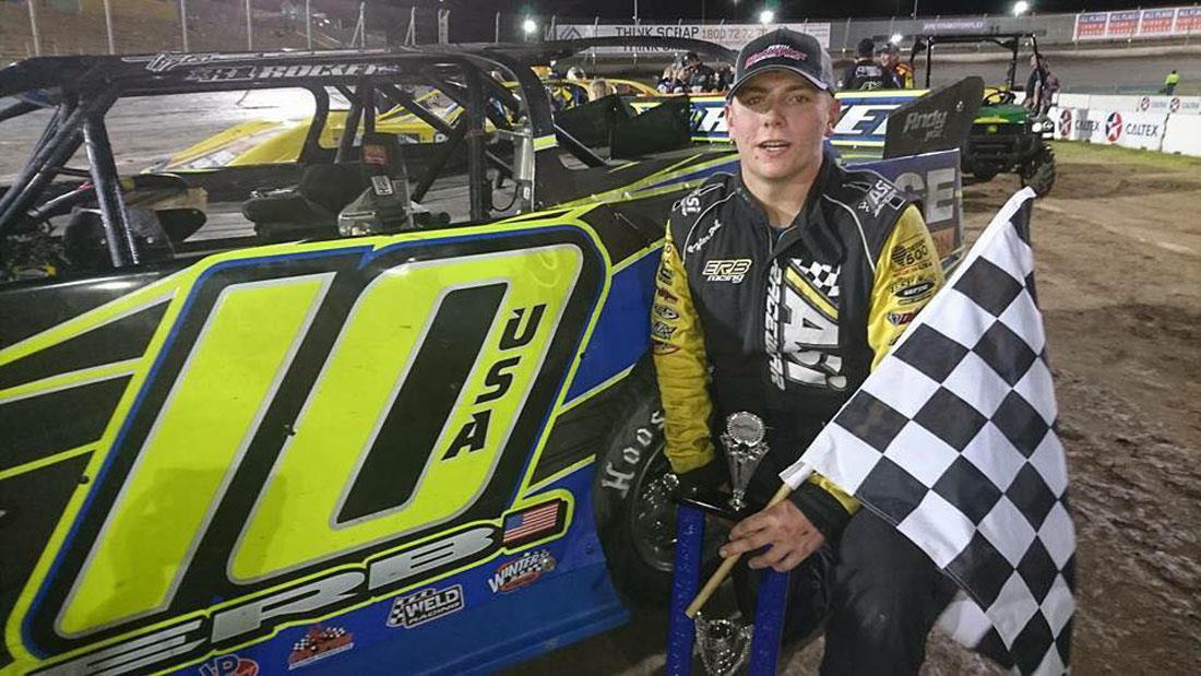 By Ben Shelton (New Waverly, TX) -- Making the most of his first trip abroad, Texan’ Tyler Erb raced to a feature win on Sunday night at Australia’s Perth Motorplex.